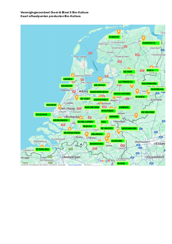 Kijk op bijgevoegde kaart of er een deelnemende afdeling (afhaalpunt) bij jou in de buurt zit en doe jezelf én je tuin er een groot plezier mee. Profiteer van dit ledenvoordeel en investeer samen met ons in duurzaamheid!
